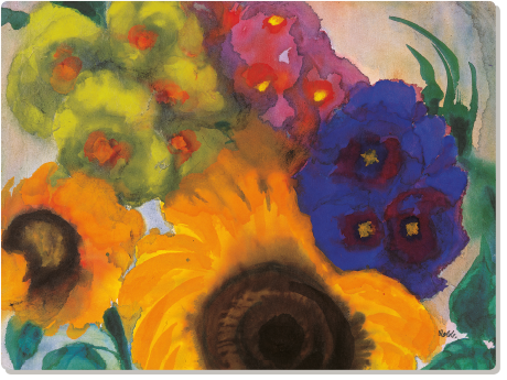 Gerne gemalt hat Frau K. M.* schon als Kind. Später wurde es ihre Leidenschaft, Schmuck zu gestalten. Doch wie es so ist, der Alltag holte sie ein; für die schönen Dinge des Lebens blieb kaum Zeit. Nach ihrer Operation, ihren Behandlungen, ihrer Reha fand sie wieder zurück zu dieser Kreativität. Auch wenn es Frau K. M.* etwas Kraft gekostet hat, ihr Hobby wiederzubeleben: Sie hat zurückgefunden zu einer „Arbeit“, die ihr Lebensfreude schenkt. Persönliches in eine eigene Formen- und Farbensprache umzusetzen, diese Inspiration zieht Frau K. M.* aus ihrem Garten. Sie setzt in Momentaufnahmen um, was sich über Wochen oder Monate in ihrem Garten verändert – heute am liebsten in der Seidenmalerei. Ihr Garten wird auf einem der edelsten und kostbarsten Stoffe lebendig.